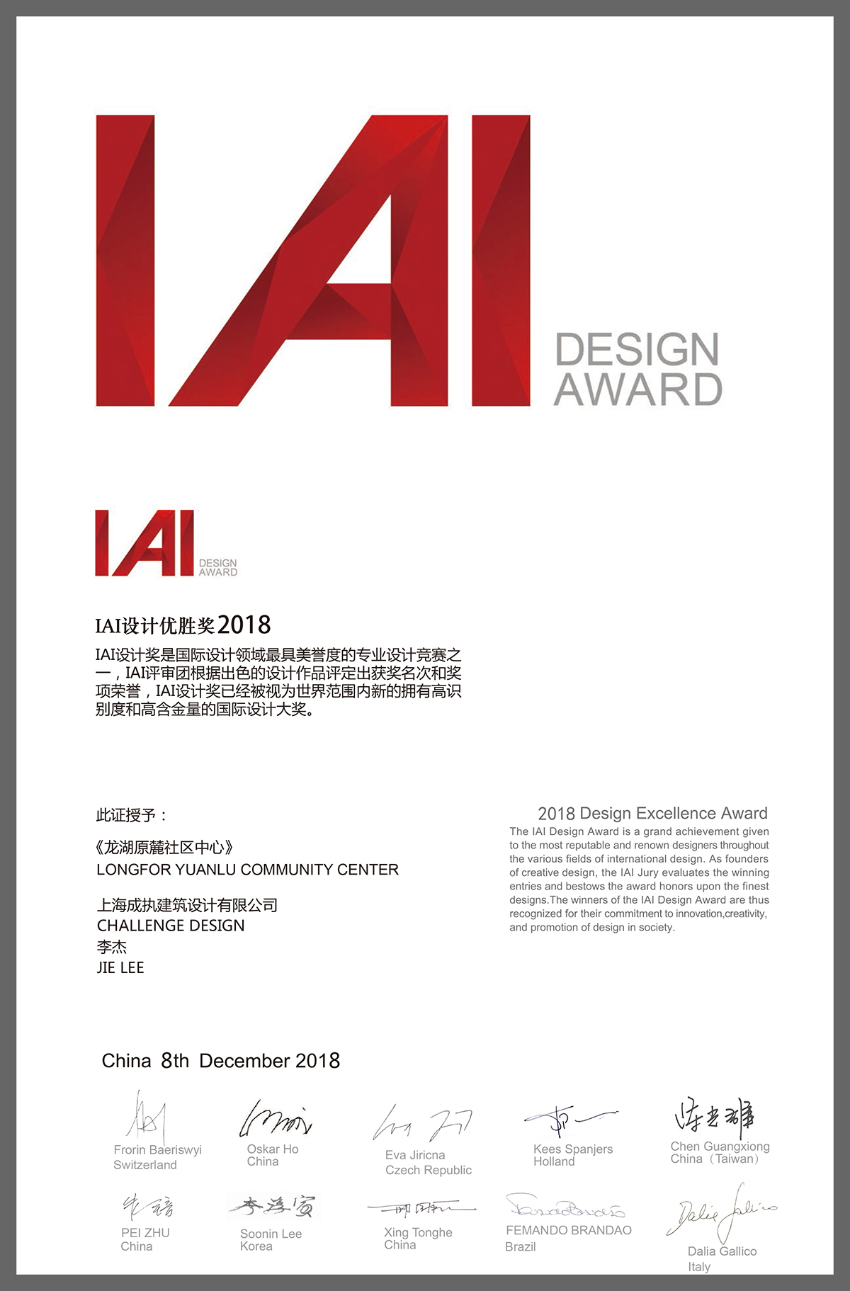 第十一屆IAI全球設(shè)計(jì)獎(jiǎng)?lì)C獎(jiǎng)盛典于12月8日晚在上海展覽中心隆重舉行,作為亞洲最具創(chuàng)新力的大獎(jiǎng),IAI評(píng)審團(tuán)根據(jù)出色的設(shè)計(jì)作品評(píng)定出獲獎(jiǎng)名次和獎(jiǎng)項(xiàng)榮譽(yù),IAI設(shè)計(jì)獎(jiǎng)已經(jīng)被視為世界范圍內(nèi)新的擁有高識(shí)別度和含金量的國際設(shè)計(jì)大獎(jiǎng)。本屆全球共兩千多件作品參加,我司主持項(xiàng)目龍湖長(zhǎng)灘原麓社區(qū)中心榮獲“2018 IAI設(shè)計(jì)優(yōu)勝獎(jiǎng)”?。