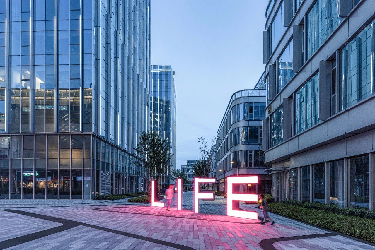 為契合軟件谷的主體氛圍,高層建筑以豎向線條強調(diào)科技網(wǎng)絡的交互感,商業(yè)形體的橫向延展則呼應了網(wǎng)絡的流暢感。結合云智能、摩斯碼、源代碼等不同的景觀節(jié)點,形成一個連續(xù)的、具有故事性和體驗性的科技流云主題公園。