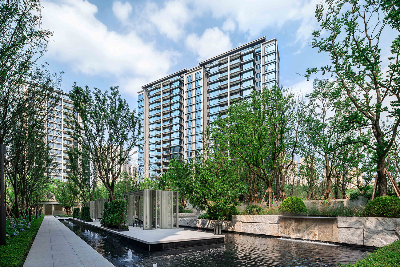在庭院與園林造景上則嫁接圓明園中西融合的靈動與開闊姿態(tài),現(xiàn)代審美提煉元素,以山水造境。規(guī)劃講究大庭小院,步移景異,疊山理水。