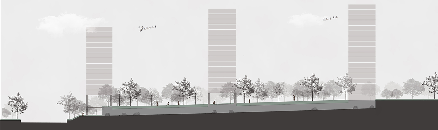不僅可以擁有公共的活動空間,更享受了半開放的鄰里場所。加強了住宅內(nèi)外部空間的連續(xù)性,使人更貼近自然。架空層作為城市空間和居住空間的鏈接,同時具有了人情味的自然空間,體會全齡化的共享社區(qū)。