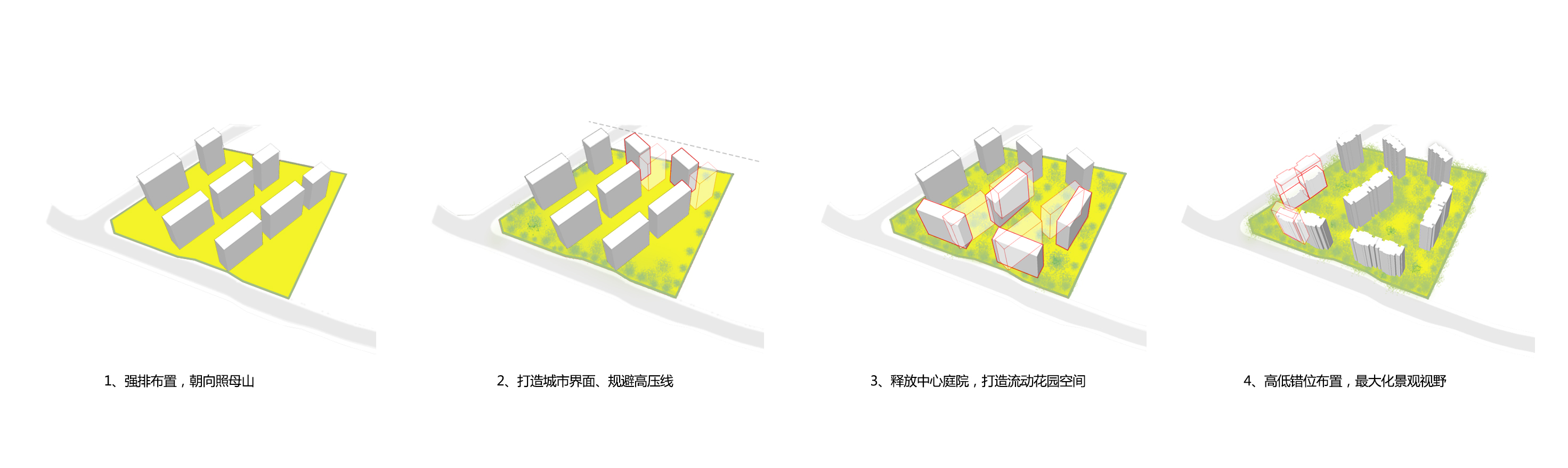 從重慶山地建筑找尋依據(jù),結(jié)合地形格局,從而意于“隱”的社區(qū)歸屬感,塵林間便是“隱于城”,進而打造“出可入世,入則隱心”的真正低密度社區(qū)。由于山城地勢不同,處于西南方向高差相對較高,同時形成錯落有致的地勢角度,帶來層次感。城市里,塵林間,極制森林秘境,讓森林重回城市。