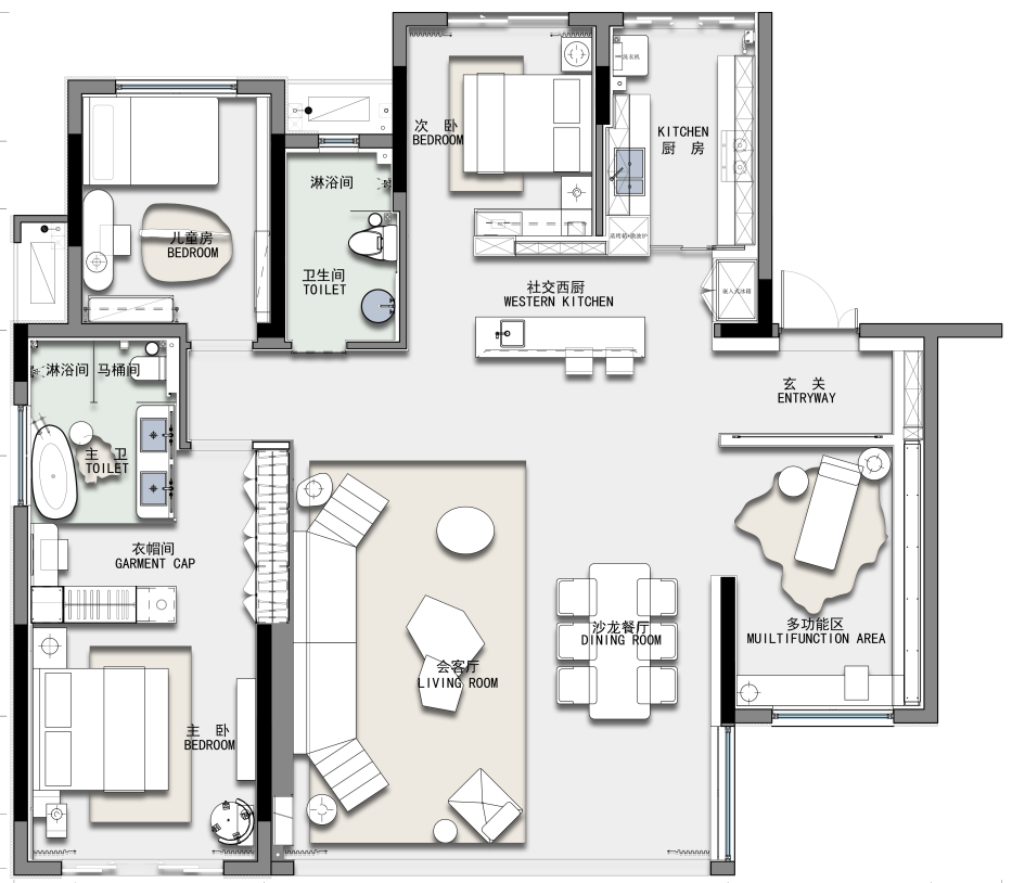 |?豪華主臥套房,步入式衣帽間+主衛(wèi)1.5米落地窗設(shè)計