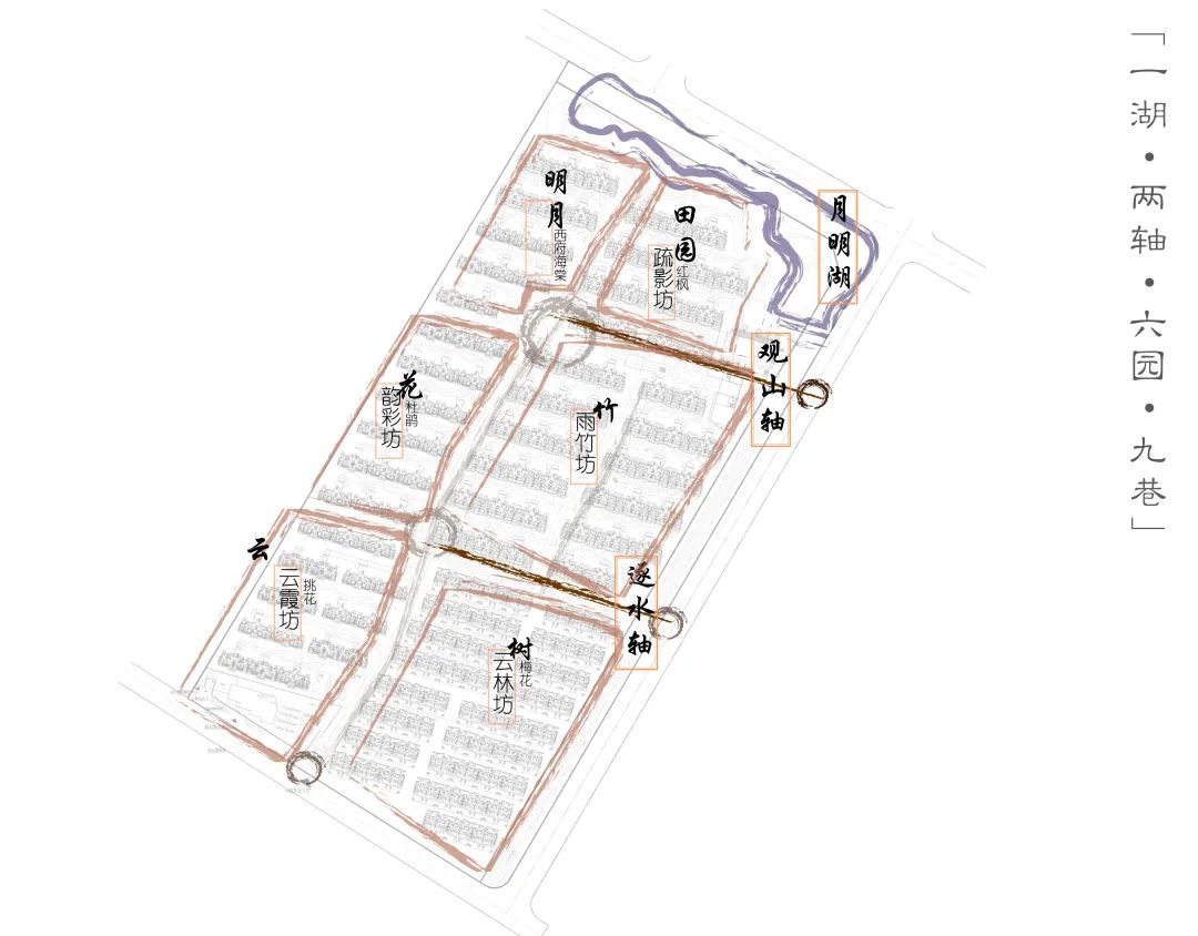 本案采取貨值最大化的排布,空間利用率佳,對(duì)外更為開闊。設(shè)計(jì)以桃源行為文化靈感來(lái)源,依托房型分布規(guī)劃了“一湖?兩軸?六園?九巷”的文化格局,綠植交映下,現(xiàn)代建筑規(guī)制與東方人居理念完美融合。