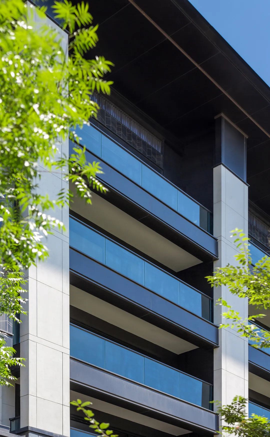建筑細(xì)部融入了予以現(xiàn)代化轉(zhuǎn)譯的中式元素,窗臺(tái)裝飾以簡(jiǎn)單別致的花紋,不喧賓奪主而獨(dú)具匠心。采用多種材質(zhì)弱化尺度,減弱深色帶來(lái)的壓迫感,香檳金色予以點(diǎn)綴。