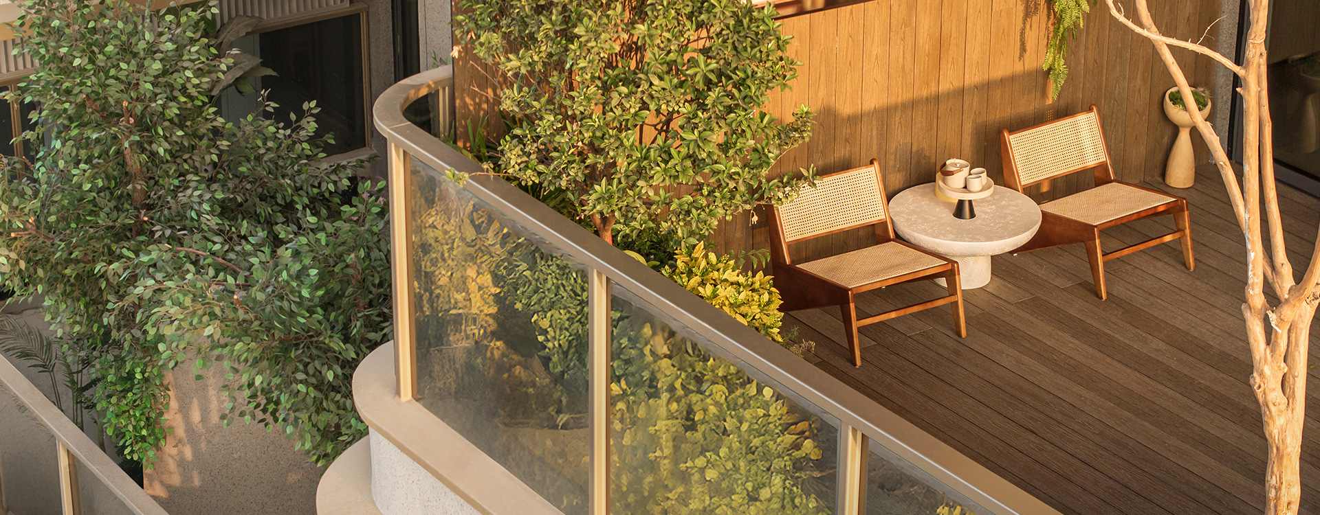 在113/115的小戶型中,設(shè)計師給到單戶南向五面寬,客廳區(qū)域錯動挑空,奇偶層露臺錯動挑空。