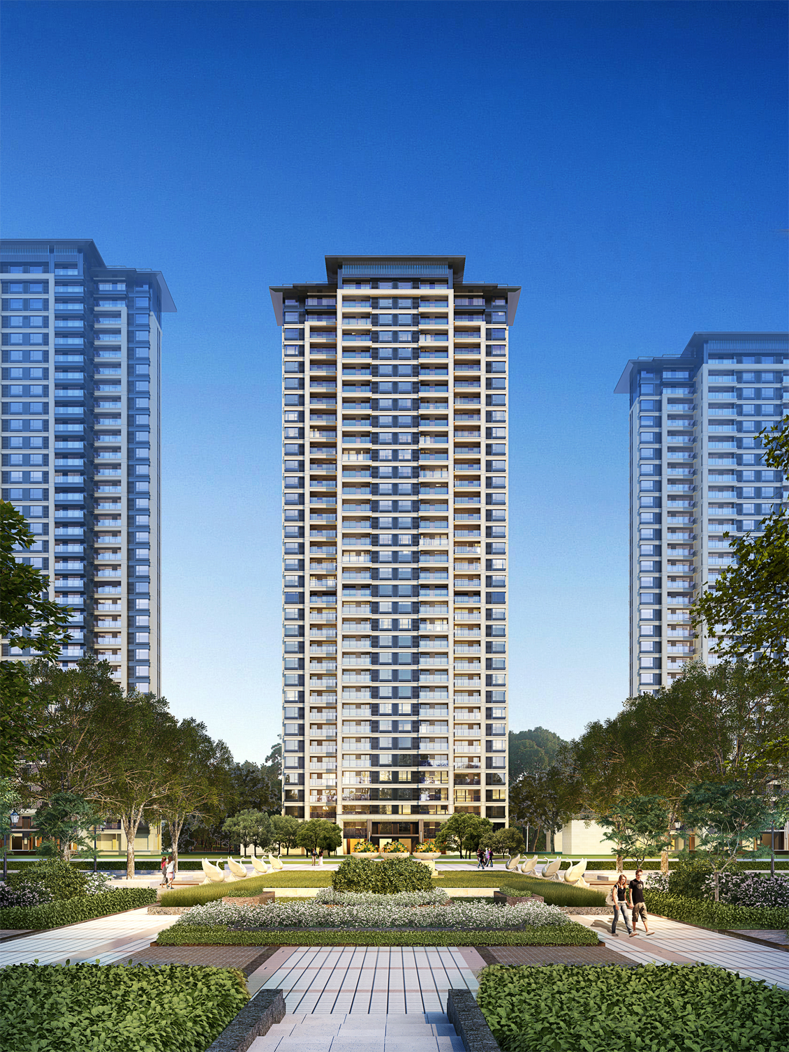 本案大區(qū)通過圍合式布局形成內(nèi)部院落空間,延續(xù)中國傳統(tǒng)“中軸對稱”原則有序排布。融合中式禮制底蘊和府系規(guī)劃格局,打造一個新中式住宅風(fēng)格府邸。讓建筑回歸傳統(tǒng)文化,溯源東方精神的居住歸屬。