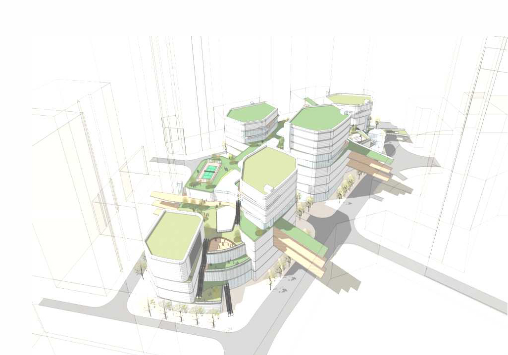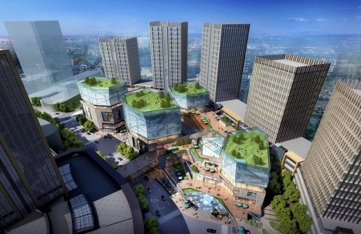 四個(gè)冰晶盒子將商業(yè)設(shè)備設(shè)置在屋頂,從高處俯瞰無一不是一處城中花園。裙樓屋頂花園的設(shè)計(jì),不僅美化了整個(gè)商業(yè)立面形象,還形成了第五個(gè)立面。