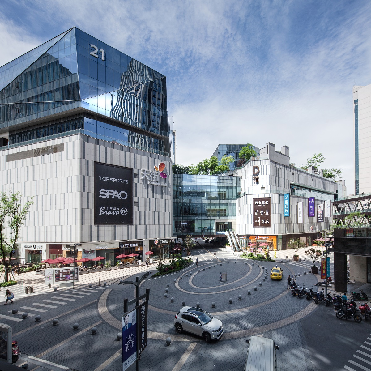 D館整體塑造給予了城市的更新,舒展的城市商業(yè)空間,富有活力有態(tài)度的建筑形體,純粹多樣化的建筑質(zhì)感。