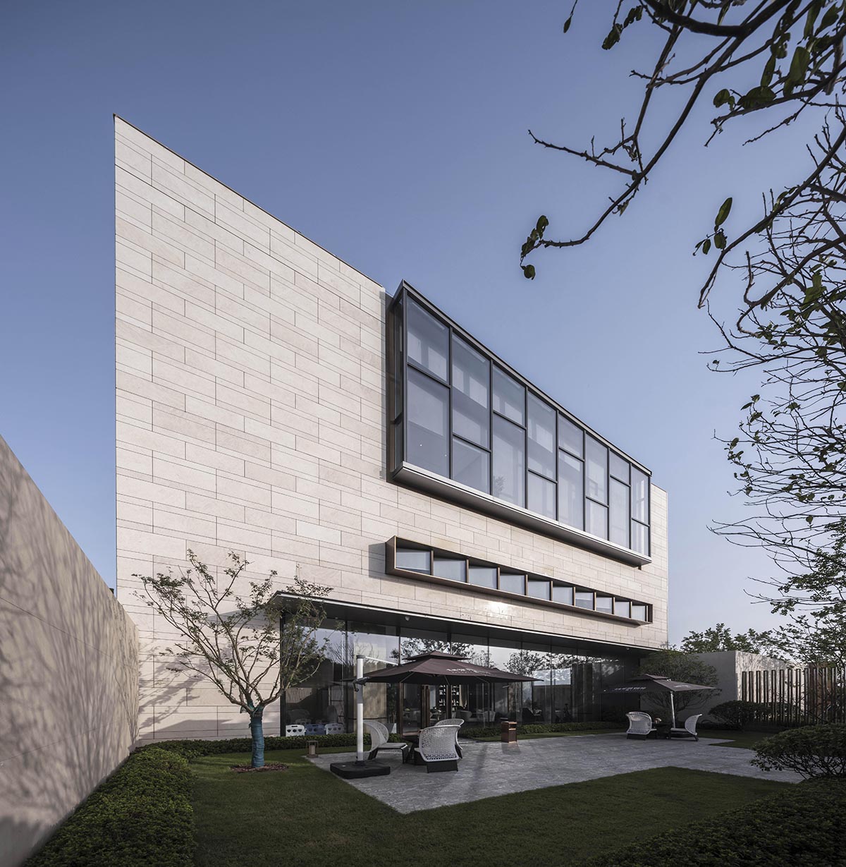 建筑位于蘇州科技城片區(qū),距太湖約2公里,作為住宅配套建設(shè)的鄰里商業(yè)中心,其先期建設(shè)的獨(dú)棟商業(yè)作為展示中心使用。在棠前如苑鄰里中心的設(shè)計(jì)中,我們期待以現(xiàn)代建筑語言來演繹蘇州傳統(tǒng)建筑的精神特質(zhì),營造一個(gè)商業(yè)、生活、文化交匯的舞臺。