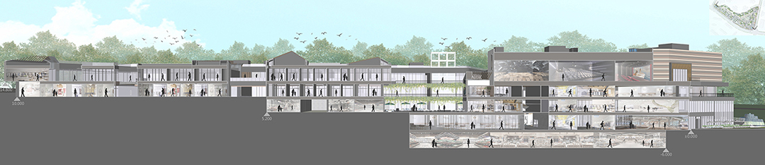 利用其多元綜合性及地勢高差,設(shè)計師做到了多功能混合、多空間復(fù)合、多時段使用以及多活動層次四個方面,互相激發(fā)并彼此協(xié)作。