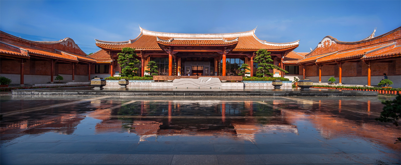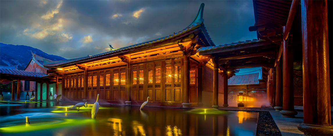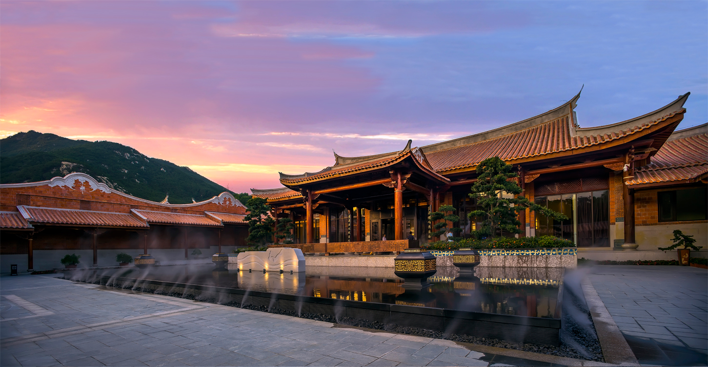 項(xiàng)目位于紫湖水庫(kù)的西北面,有“紫帽凌霄”之譽(yù),緊鄰紫帽山風(fēng)景區(qū),坐落在晉江市的北側(cè)。酒店的建筑立面參考了泉州當(dāng)?shù)氐墓偈酱筘龋浞诌\(yùn)用了燕尾脊,紅磚墻,青石等傳統(tǒng)建筑元素。木材與石材為主要的建筑材料,成功運(yùn)用其特性,體現(xiàn)了對(duì)地方建材的尊重。通過(guò)“厝”與“院”的提取和重組,創(chuàng)造出一種具有閩南意味的中式空間。