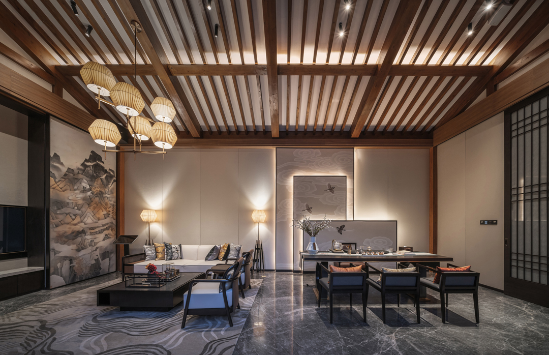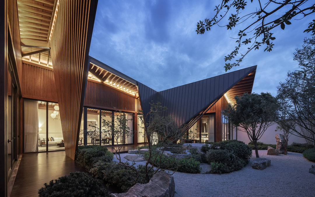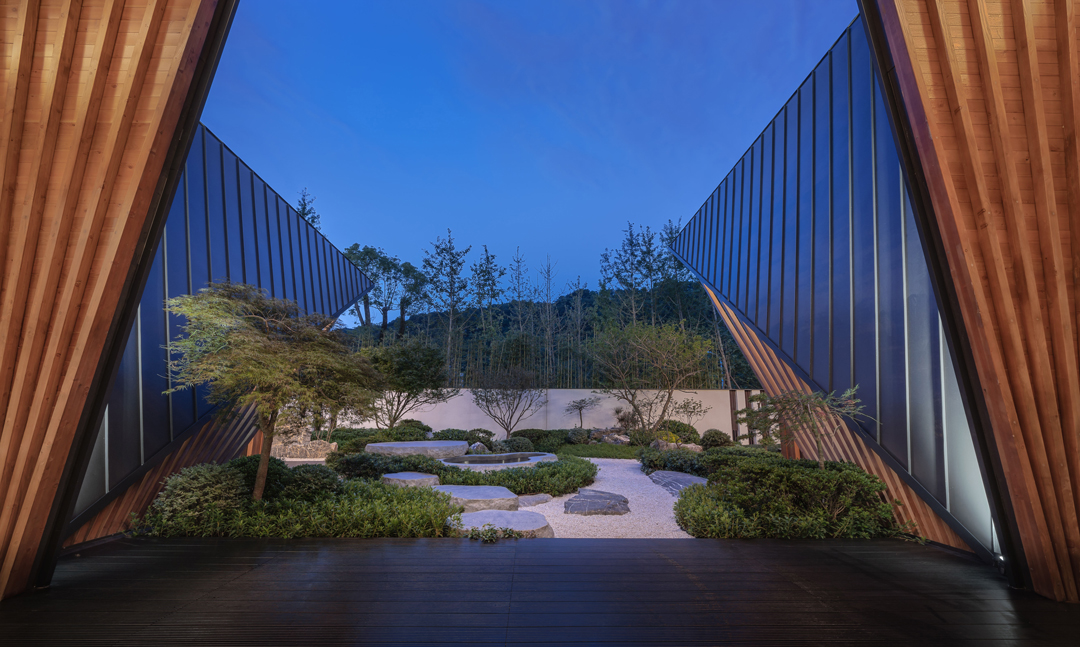 東方園林小巧而精致,枯寂而玄妙,抽象而深邃。建筑置身于這園林之中,寧?kù)o致遠(yuǎn),借景于自然,將人們引入到一種淡泊清幽的禪意靜謐之中。