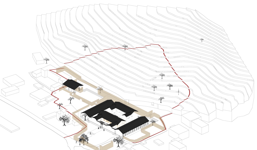 業(yè)主周先生在此渡過了童年的美好時(shí)光,兒時(shí)的點(diǎn)滴總會(huì)浮上心頭。設(shè)計(jì)充分尊重了他的情感記憶,以“自然營(yíng)造”為總體策略,不增加不屬于場(chǎng)所本身的體量或裝飾,盡量減少對(duì)自然環(huán)境和鄉(xiāng)民的生活影響。