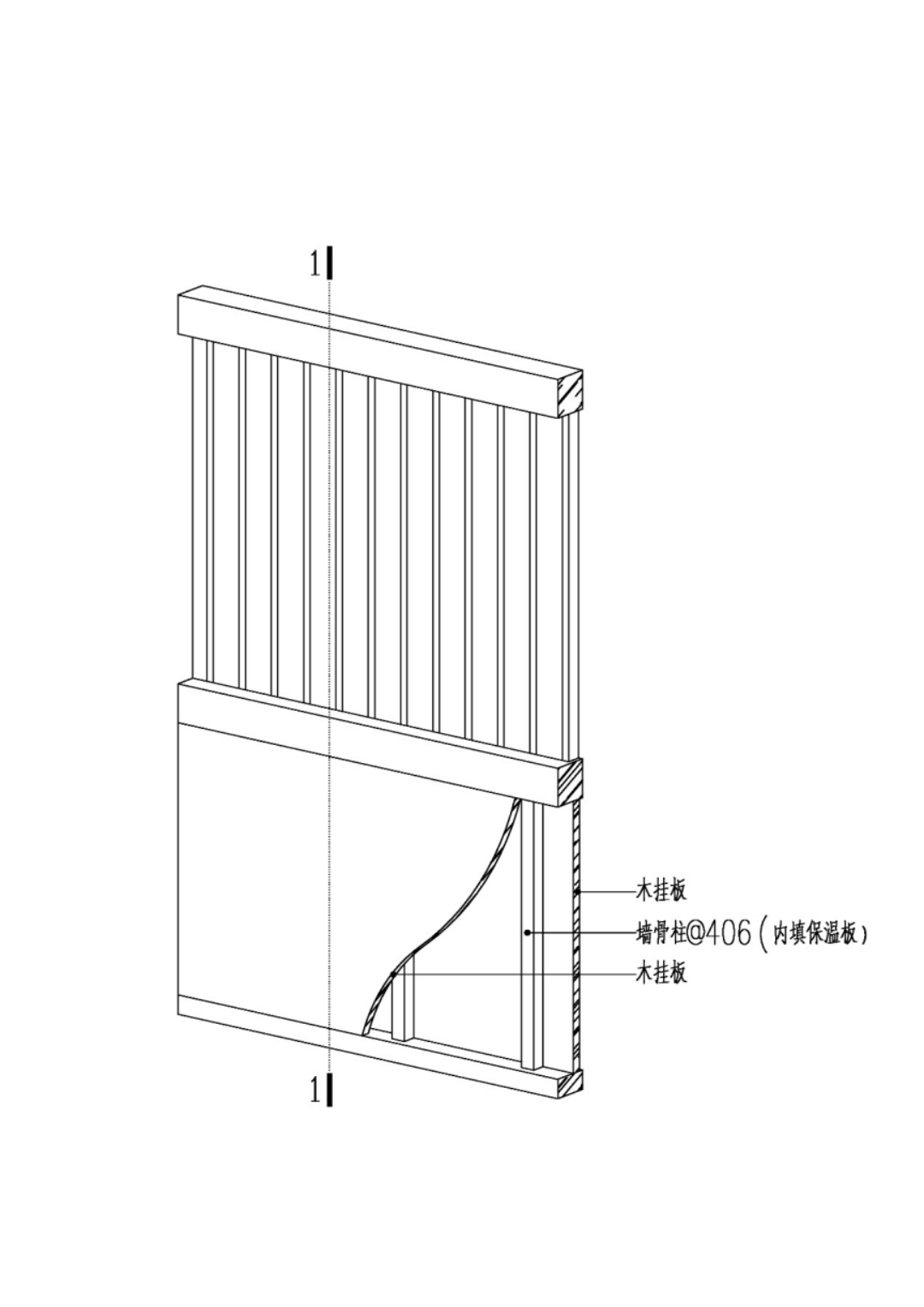 目前傳統(tǒng)木結(jié)構(gòu)建筑中的單板墻構(gòu)造僅為單片木板結(jié)構(gòu),并不滿足保溫節(jié)能要求,嚴(yán)重影響建筑的后期使用。對(duì)此加以改良,在單板墻間增加一層保溫層,使得建筑更為節(jié)能舒適。