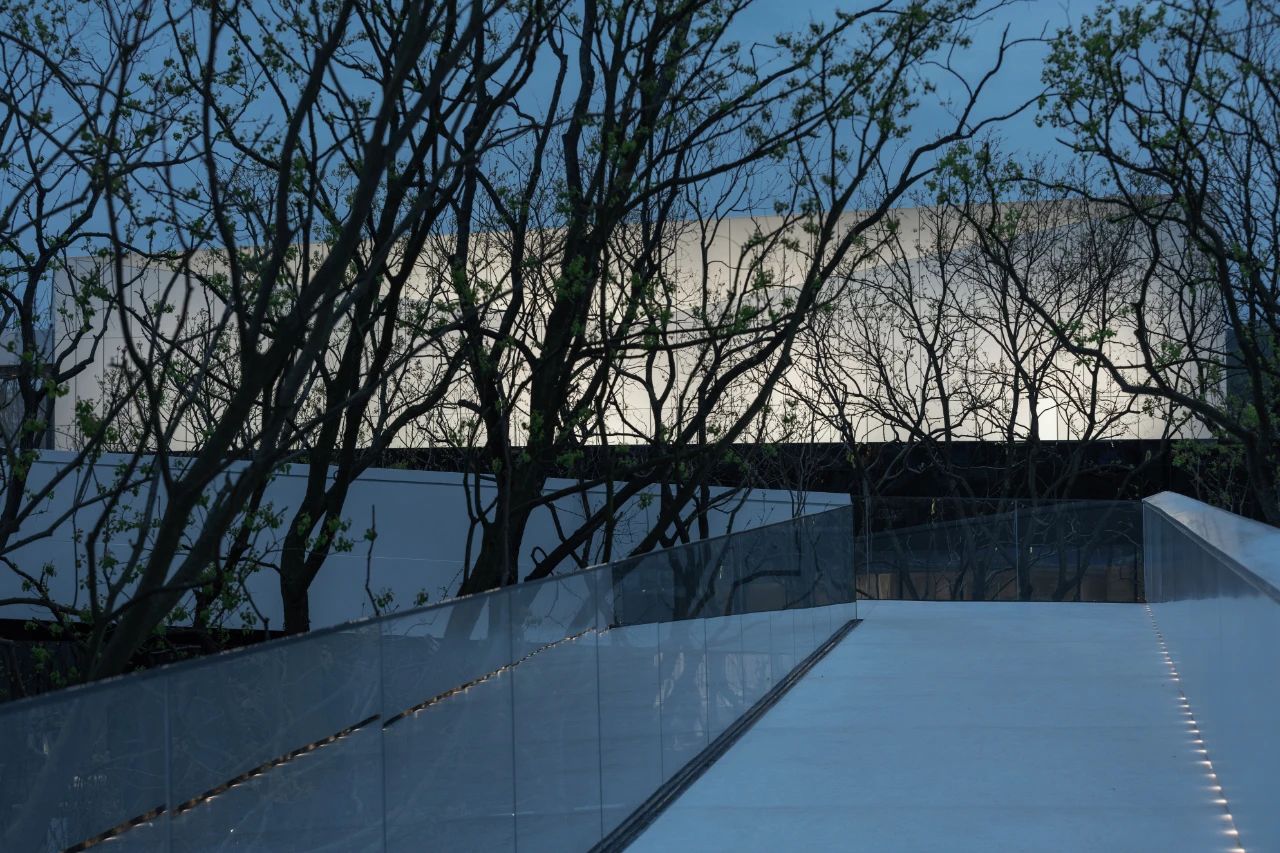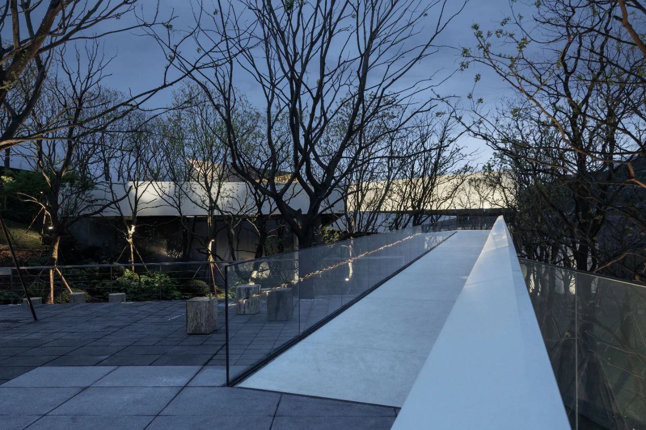 景觀連橋架于山坡之上,曲折蜿蜒,高低錯落與建筑統(tǒng)一融合。訪客在游走中,感受穿梭于樹梢上的野趣,運動將時間以它鮮活的流動狀態(tài)與空間連接,使他們能體驗到時空秩序感。