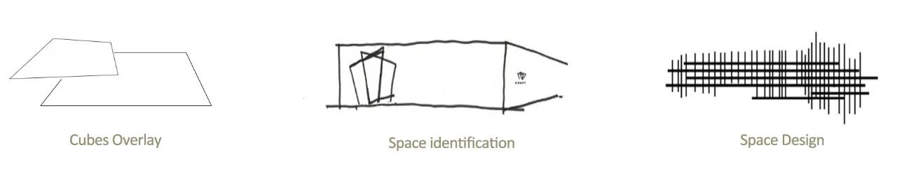 整個建筑共三層,設計師打破尋常流線,使人們從高往低游走。入口的折線造型與星空般的質感吸引著人們走進建筑,通過一條長廊走向盒子中。內部兩層通高的空間,瞬間給人一種豁然開朗的體驗感。動態(tài)的設計過程決定了形式的動態(tài)特征,給予空間更多的流動性。