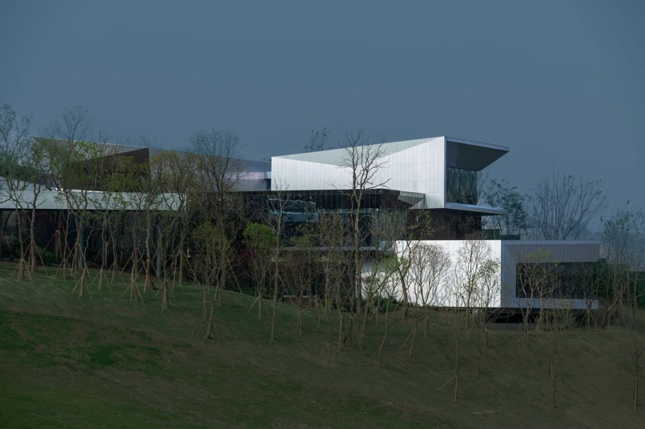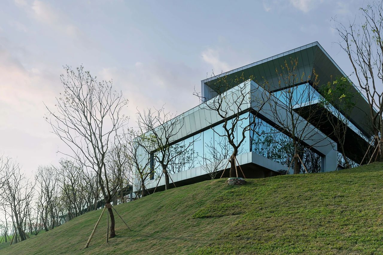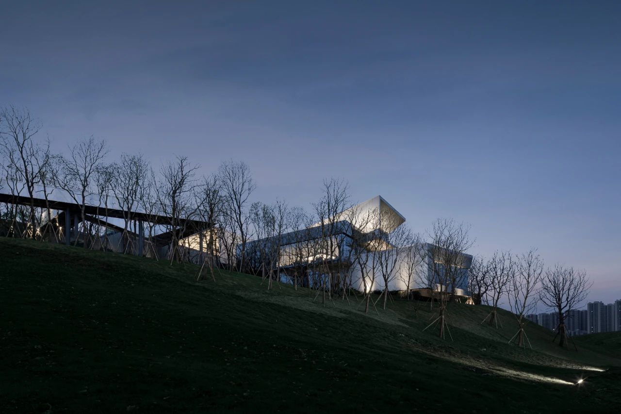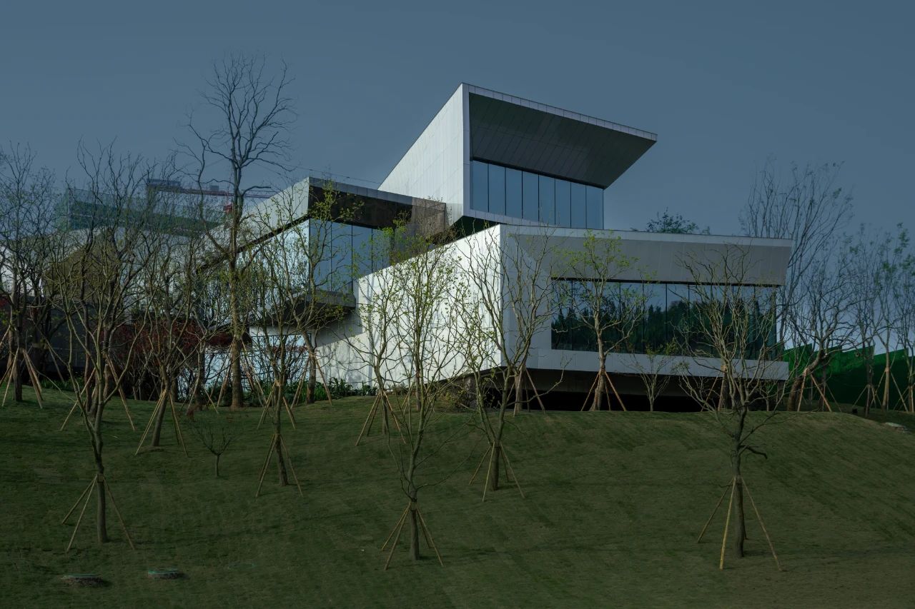 本案毗鄰重慶渝北區(qū)花石溝公園,基地位于小山坡上,設計師讓建筑與環(huán)境和平共處,并不試圖破壞或戰(zhàn)勝它們的直接背景。作為社區(qū)活動中心,希望人們不再仰視它,而是放低視角親自體驗它,這才是建筑的歸宿。