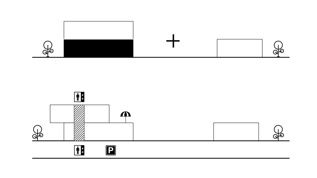 設(shè)計(jì)之初,對(duì)于塔樓與商業(yè)的組合,我們經(jīng)歷了多番思考。在排除了商業(yè)沿街布置、商業(yè)集中在塔樓下、商業(yè)沿塔樓布置后,選定了塔樓底商和獨(dú)棟商業(yè)合二為一的設(shè)計(jì)策略。