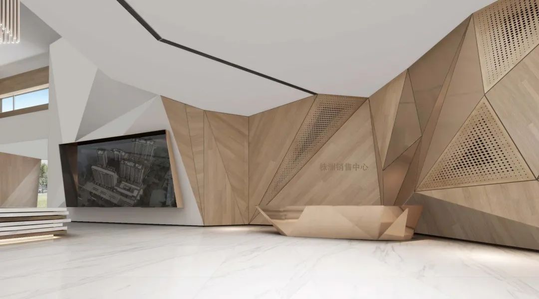 幾何學(xué)是設(shè)計師最基本的技能和設(shè)計手段,幾何形體的使用與組合,反應(yīng)了各個時代的建筑藝術(shù)特征。現(xiàn)代建筑空間的各類問題,也經(jīng)常在幾何學(xué)基礎(chǔ)上加以解決。在空間設(shè)計的趨勢下,最大限度地約減材料變化,純化表面,去除大量非本質(zhì)的因素,將主題與空間交織在一起。通過折線、轉(zhuǎn)角與光線的變化,將作品本身多層次的復(fù)雜景色呈現(xiàn)出來,是本案所帶來的啟發(fā)。
