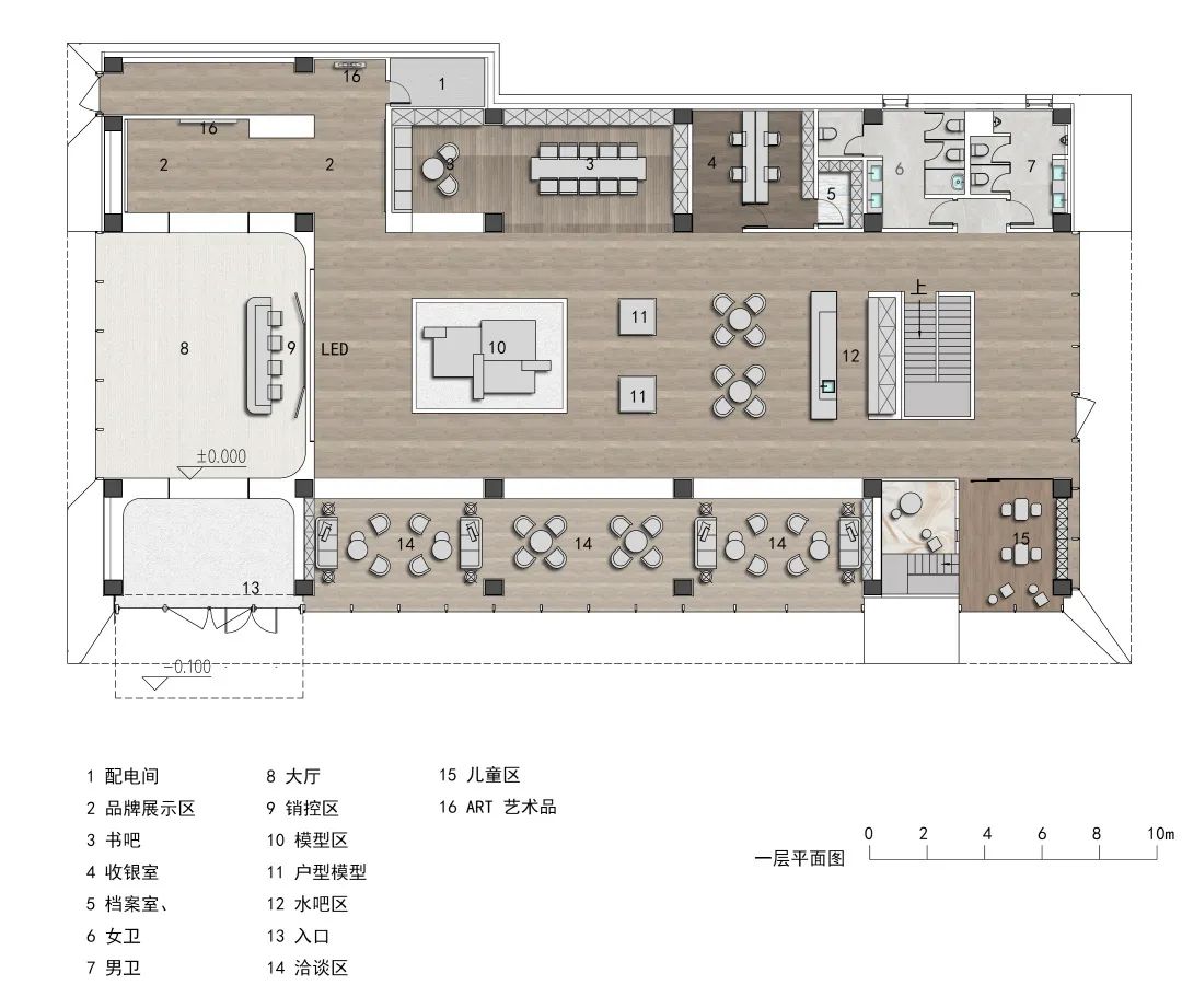 多空隙空間:挑高的回廊空間,橫向的尺度將空間的線性感完美的體現(xiàn)。半透的玻璃界定著空間,透漏著光影與空間,同時(shí)作為載體描繪著線性構(gòu)成的光的語言。充分利用灰空間實(shí)現(xiàn)建筑與景觀的柔和過渡,使兩者成為自然而有機(jī)的整體。