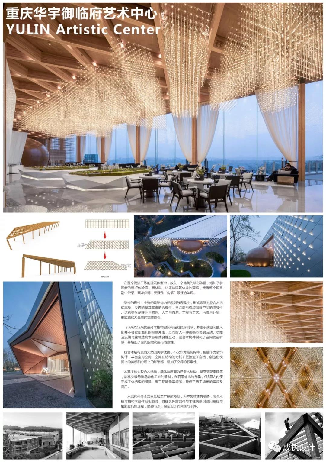 本案位于重慶龍興懸崖之巔,遠(yuǎn)眺御臨,極簡設(shè)計(jì),順應(yīng)地形。設(shè)計(jì)上追求內(nèi)部功能的理性清晰明確的邏輯思考,把內(nèi)部的事物規(guī)則體現(xiàn)在外在形式上。結(jié)構(gòu)的理性,主張的是結(jié)構(gòu)內(nèi)在規(guī)則與表現(xiàn)性,形式來源為膠合木結(jié)構(gòu)本身,反應(yīng)的是其需求的合理性,又以菱形格構(gòu)強(qiáng)調(diào)空間的連續(xù)性。結(jié)構(gòu)美學(xué)是理性與感性、人工與自然、工程與工藝、內(nèi)隱與外顯、形式感和力量感的完美結(jié)合。
