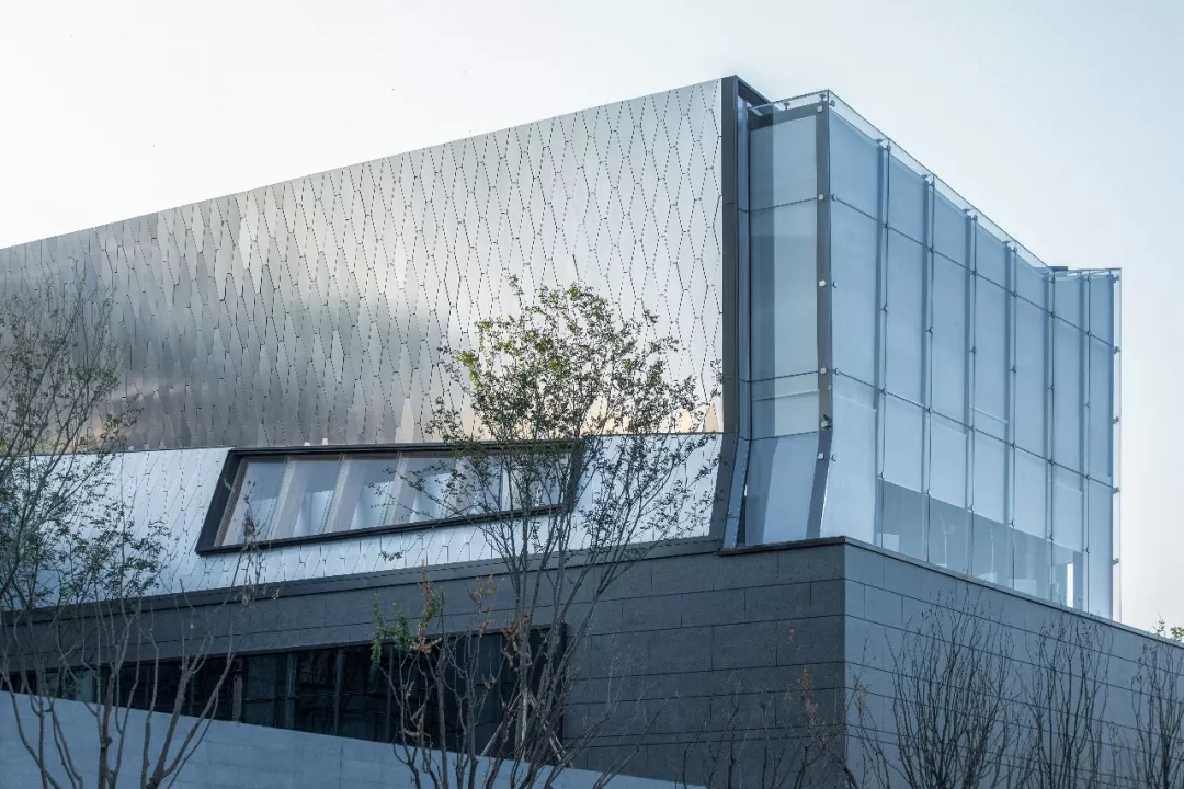 為了選出適宜的表皮材料,李杰在兩個多月的時間內(nèi)進行了六七種材料樣板的比對。在施工現(xiàn)場至少選擇了三次,觀察材料在一天之中不同時間段光線中的效果,從而選擇出具有理想的光影關(guān)系和反光效果的材料。