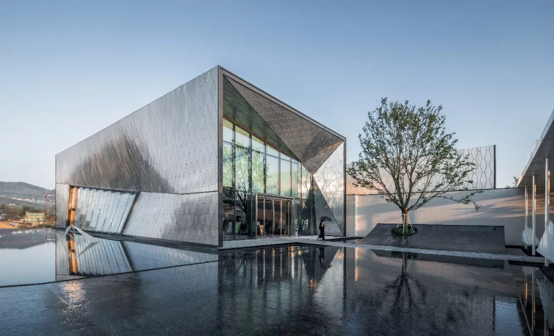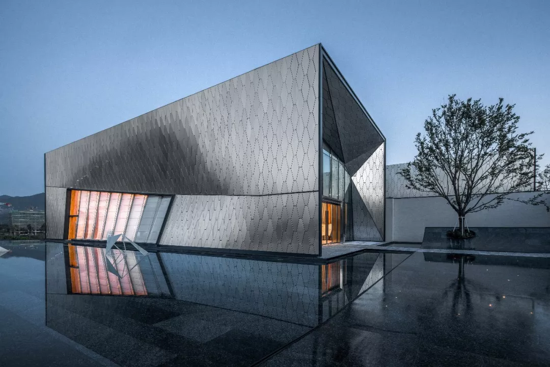 表皮由蜂窩狀基本單元構(gòu)成,每塊蜂窩鋁板精細包邊,開縫拼掛,細節(jié)考究,追隨自然光的變化產(chǎn)生復(fù)雜而神秘的視覺效果。這種虛幻感正契合“山上的圣殿”的設(shè)計意圖,居于云端,反射自然與天光,進而讓人感受到光影的時移與時間的流逝。