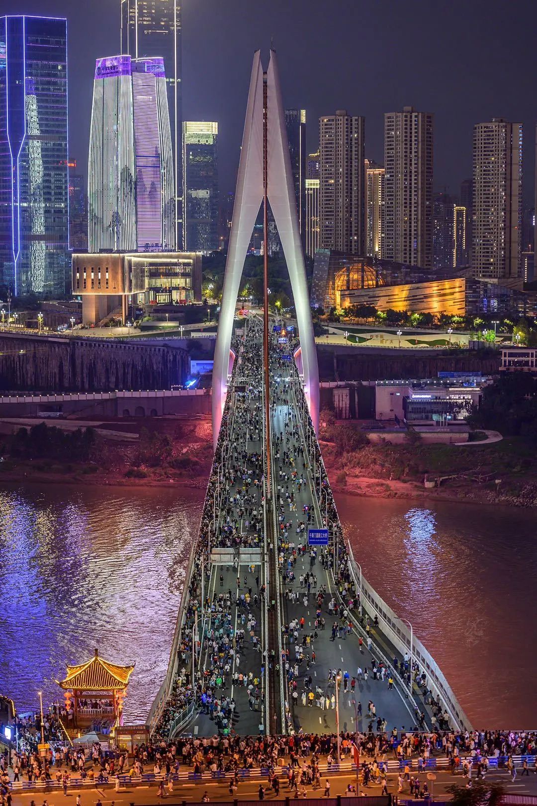 10.1期間千廝門大橋秒變步行街 ©渝中警方
