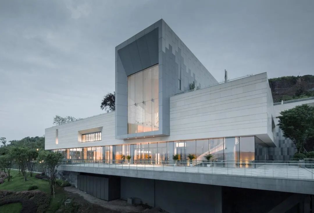 本案位于重慶龍興懸崖之巔,遠眺御臨,極簡設(shè)計,順應(yīng)地形。建筑師選擇將建筑置于最高處的巖體之上,極具戲劇性的斷崖式高差,巧妙的選擇角度后,最大化利用景觀資源,一望無際的視距,建筑猶如張開雙翅的仙鶴傲立于仙巖之上。倚山而建,山物一體,十里之外,仍見其磅礴雄姿。